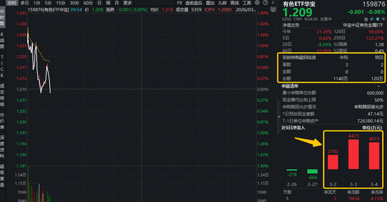 今日(3月5日),揽尽有色金属行业龙头的有色ETF(159876)场内涨幅开盘摸高1.4%,当前在水面附近震荡,现跌0.08%,截至发稿,获资金实时净申购1020万份,此前3日连续吸金,合计金额1.07亿元,反映资金看好有色后市表现,积极进场抢筹!