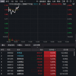 5日早盘,光模块CPO大举反攻,新易盛领涨超9%,中际旭创涨超6%,联特科技、兆龙互联、锐捷网络等多股涨超3%。热门ETF方面,重点布局光模块的创业板人工智能ETF(159363)场内大举上扬3%,成交超2亿元
