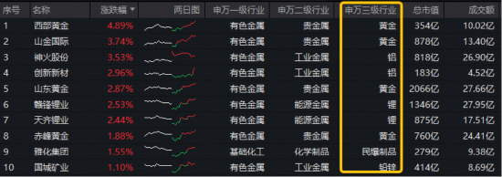 盘面上看,无惧国际金价扰动,今日(3月9日)A股黄金龙头逆市领涨,西部黄金涨超4%,山金国际涨逾3%,此外,神火股份、创新新材、山东黄金、赣锋锂业、天齐锂业等个股跟涨。