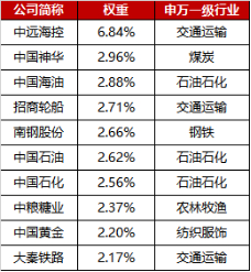 表:央企红利指数前十大成份股