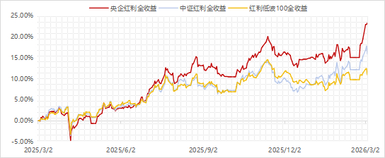 截至2026年3月4日,计入股息收入的央企红利全收益指数,近一年累计上涨23.30%——