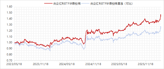 基金累计回报及净值数据来源:华泰柏瑞基金,经托管行复核。业绩基准数据来源:Wind,数据区间:2023/5/18-2026/3/4。产品业绩基准为中证中央企业红利指数收益率,区间涨幅为23.20%。详细业绩备注见文末,基金的过往业绩并不预示其未来表现,基金管理人管理的其他基金的业绩并不构成本基金业绩表现的保证。