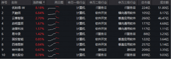 成份股方面,优刻得-W领涨超8%,天融信涨逾6%,云赛智联、启明星辰、迪普科技、易华录、国投智能等个股跟涨。另一方面,拓维信息、云天励飞-U跌超3%,跌幅居前,拖累指数表现。