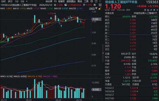1.6T光模块规模化商用启动!算力龙头猛攻,华宝基金创业板人工智能ETF(159363)涨超3%强势突破!