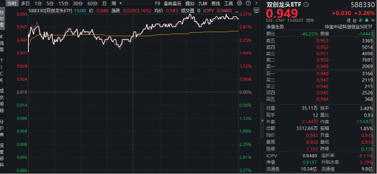 今日(3月10日)A股主要指数携手上涨,科技成长风格表现居前,覆盖科创板+创业板高成长龙头的硬科技宽基——双创龙头ETF(588330)场内涨幅最高上探3.37%,收涨3.26%,上交所数据显示,该ETF昨天单日吸金1264万元,反映或有资金看好硬科技后市表现,借道ETF提前进场埋伏!