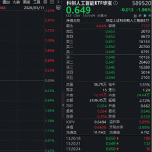 今日(3月11日)重点布局国产AI产业链的科创人工智能ETF(589520)场内价格一度跌超2%,现跌1.96%,资金或迎逢跌布局国产AI赛道机遇,上交所数据显示,该ETF此前5日累计吸金936万元。