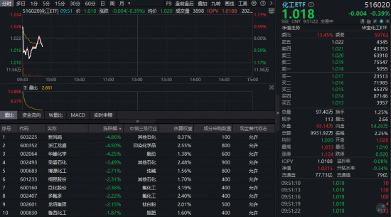 华宝基金化工ETF(516020)高开回落!化工品涨价风暴已至,顺周期景气回归在即?