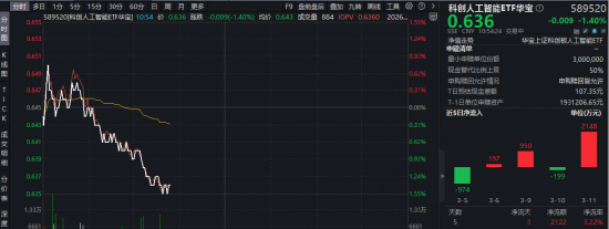 盘面上,今日(3月12日)A股主要指数悉数飘绿,重点布局国产AI产业链的科创人工智能ETF(589520)随市回调,场内价格现跌1.4%,资金或迎逢跌布局国产AI赛道机遇!事实上,该ETF昨天亦单日吸金2148万元!