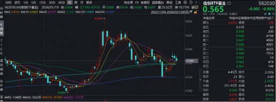盘面上,周四(3月12日)A股主要指数悉数飘绿,聚焦信息技术自主可控领域的信创ETF基金(562030)场内涨幅早盘上探1.05%,午后随市盘整回调,场内价格现跌0.88%,下方仍有多根均线支撑,看好网络安全赛道的资金,或迎来逢跌布局机会。