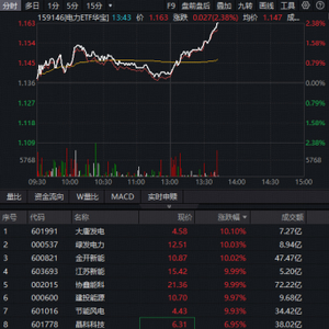 12日午后,火电、风电、光伏等概念股集体走强,电力逆市爆发涨停潮,大唐电力、绿发电力、金开新能、协鑫能科、江苏能源、建投能源、节能风电等多股封板!热门ETF方面,全“电”布局的电力ETF华宝(159146)午后大涨超2%连续新高!