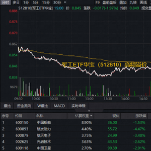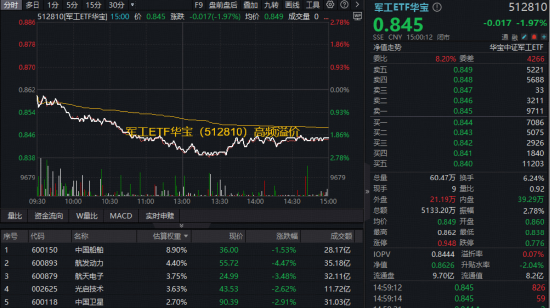 军工震荡,什么原因?华宝基金军工ETF(512810)放量跌近2%频现溢价!机构:“十五五”军工迎三重驱动