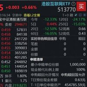 3月13日,港股早盘低开,恒指、恒科指双双飘绿,低位科网板块韧性较强,港股AI核心工具——港股互联网ETF(513770)场内价格逆市上涨0.66%。互联网龙头多数走强,阿里巴巴-W、腾讯控股双双涨逾1%,小米集团-W跟涨。