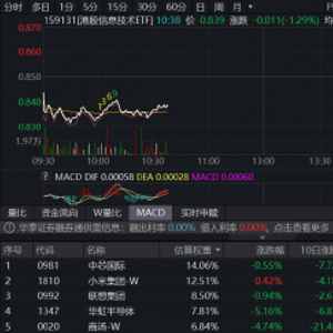 直指港股芯片超级周期!可以T+0的港股芯片产业链ETF——全市场首只聚焦“港股芯片”产业链的港股信息技术ETF(159131),标的指数由“70%硬件+30%软件”构成,重仓港股“半导体+电子+计算机软件”,涵盖45只港股硬科技公司,其中中芯国际权重达14.07%,小米集团-W权重12.41%,华虹半导体权重7.47%;不含阿里巴巴、腾讯、美团等大市值互联网企业,锐度更高,更易捕捉港股AI硬科技行情。(截至2026.3.11)