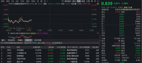 今日(3月13日)早盘,港股硬科技重回调整,华虹半导体跌超5%,商汤-W跌超4%,中芯国际跌近1%。全市场唯一*聚港股信息技术ETF(159131)场内价格低开后小幅震荡,现涨1.29%,至此已连续3日调整。