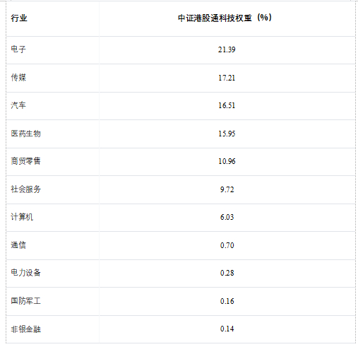 中证港股通科技指数除了涵盖电子、计算机等传统科技领域外,在医药生物、汽车等新兴科技领域相比其他港股科技类指数呈现明显超配特征。截至2026年1月31日,各行业权重如下(数据来源:Wind,截至2026/1/31):