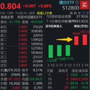 银行近期连续逆市表现吸引资金关注。上交所数据显示,银行ETF(512800)近2日获资金净流入1.96亿元。