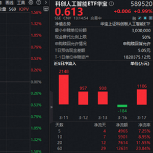 今日(3月18日)AI赛道奋起反攻,重点布局国产AI产业链的科创人工智能ETF(589520)场内涨幅盘中上探1.48%,现涨0.99%,上交所数据显示,该ETF近5日累计吸金4965万元,拉长时间来看,近60日累计狂揽1.26亿元,反映资金看好国产AI赛道后市表现,逐步进场布局!