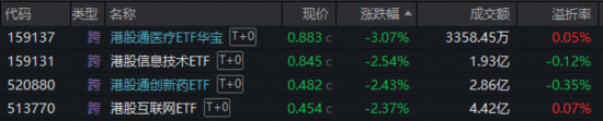 港股医药全线回调,创新药产业链领跌,100%创新药研发标的——港股通创新药ETF(520880)跌2.43%失守所有均线,高CXO含量的港股通医疗ETF华宝(159137)跌3%止步三连阳。