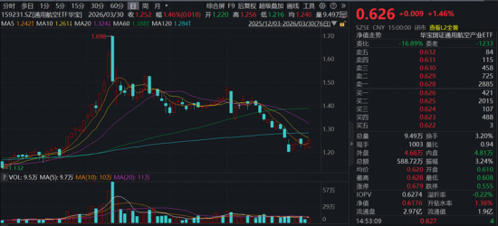 3月30日,航空航天走势回暖,一键布局商业航天+卫星导航+低空经济+大飞机的通用航空ETF华宝(159231)开盘宽幅震荡后强势拉涨,盘中一度上冲1.78%,最收涨1.46%,成交显著放量。