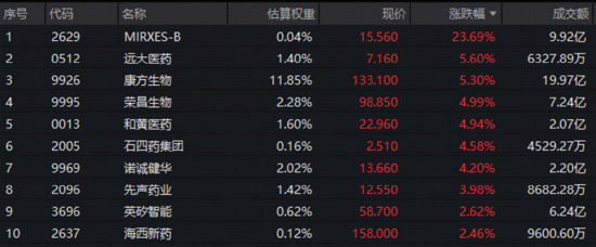 港股通创新药ETF华宝(520880)成份股亮点颇多:英矽智能盘初暴涨近15%,收涨2.62%,振幅超14%,成交6.24亿元创历史次高。MIRXES-B午后突然狂飙逾43%,收涨23.69%%!远大医药、康方生物、荣昌生物齐涨5%。