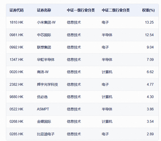 直指港股芯片超级周期!可以T+0的港股芯片产业链ETF——全市场首只聚焦“港股芯片”产业链的港股通信息技术ETF华宝(159131),场外联接基金代码026755,标的指数由“70%硬件+30%软件”构成,重仓港股“半导体+电子+计算机软件”,涵盖50只港股硬科技公司,其中小米集团-W权重13.25%,中芯国际权重达12.54%,联想集团权重达9.04%,华虹半导体权重7.09%;不含阿里巴巴、腾讯、美团等大市值互联网企业,锐度更高,更易捕捉港股AI硬科技行情。(截至2026.3.31)