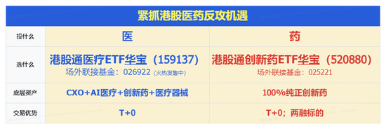 强业绩验证创新药公司加速进入收获期,多家机构提示,“坚定赛道逻辑,重视底部区域机会”!二级市场上,港股医药自去年9月以来进入阶段调整期,当前仍处阶段低位,提前埋伏港股医药核心资产,配置认准两大T+0利器: