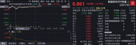 4月1日,科技主线狂飙,芯片产业链全线走强,截至发稿,芯原股份涨超10%,晶合集成涨超8%,寒武纪涨逾7%,华虹公司、源杰科技、海光信息等涨幅居前。全“芯”布局芯片产业的科创芯片ETF华宝(589190)高开高走,场内价格大涨逾3%,向上收复10日线。