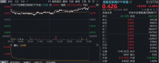 4月港股开门红,恒指重回25000点上方,恒科指收涨逾2%,互联网龙头集体回暖,阿里巴巴-W涨超3%,腾讯控股涨逾2%,小米集团-W跟涨。港股AI核心工具——港股互联网ETF华宝(513770)高开高走,场内价格收涨2.4%。