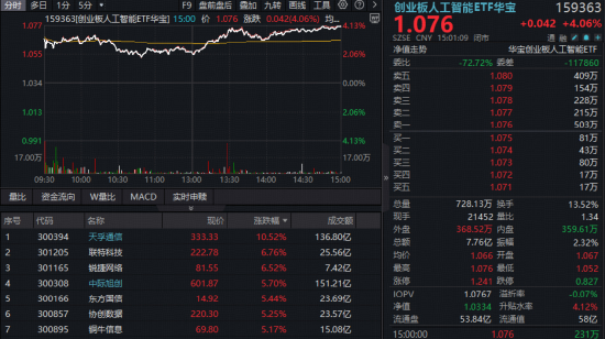 三、量价齐升!“Token经济”引爆,华宝基金创业板人工智能ETF放量涨超4%领跑同类!天孚通信飙升超10%