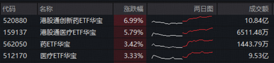 港股医药弹力出众,100%创新药研发标的——港股通创新药ETF华宝(520880)、港股医疗核心资产——港股通医疗ETF华宝(159137)收涨6.99%、5.79%,时隔仅2个交易日,双双再创历史最大单日涨幅!