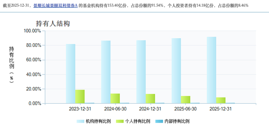 从具体产品来看,这一趋势早有端倪,天天基金网数据显示,截至2025年末,前述规模增长最大5只产品中,景顺长城景颐双利、招商安本增利、鹏华双债加利的机构投资者持有比例均超过90%,这意味着机构资金早已是这几只产品“压舱石”。