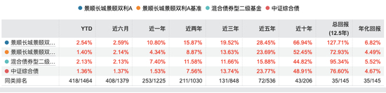 如景顺长城景颐双利债券在一季度规模激增224.18亿元,总规模从去年底的不足400亿飙升至614.77亿元,稳居“固收+”基金规模第一的宝座。Wind数据显示,该产品成立于2013年11月,总回报127.71%,跑赢同期中证综合债基准回报76.6%;年化回报6.82%,跑赢中证综合债基准年化回报4.67%;今年以来回报率2.54%,回报排名418/1464。