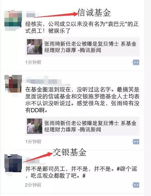 而来自信诚基金、交银基金的市场部人士也在朋友圈澄清了。