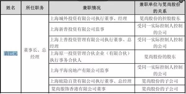而笕尚股份的《公开转让说明书》披露的资料显示,公司实际控制人袁巴元出生于1973年11月出生,中国国籍,无境外永久居留权,本科学历。1997年7月至2000年11月就职于上海红捷实业有限公司,任总经理;2001年3月至2008年12月就职于上海洛奇时装有限公司,任总经理;2009 年1月至2011年10月就职于上海华锐时装有限公司,任总经理;2011年11月至今就职于股份公司,现任董事长、总经理。