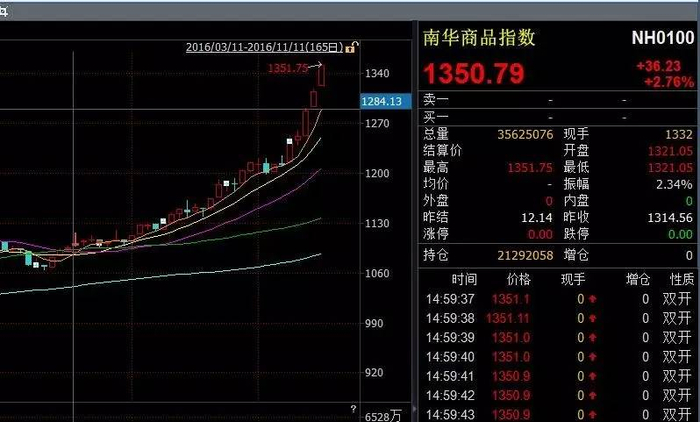 昨晚九点开盘,依然延续了半天的形势一片大好,甚至可以说十分喜人,满屏皆红。比如铁矿、棉花等品种早早就封上涨停,其余各个品种也都涨幅巨大。
