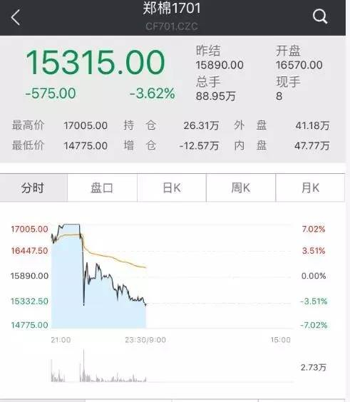 没过多久,惊人的一幕发生了!晚间九点半左右,棉花主力合约直接一条直线从涨停打到跌停,整个波动幅度超过13%。