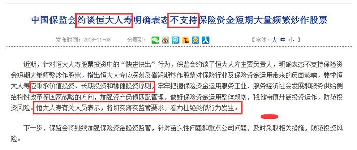 附上保监会约谈截图: