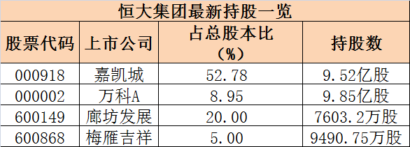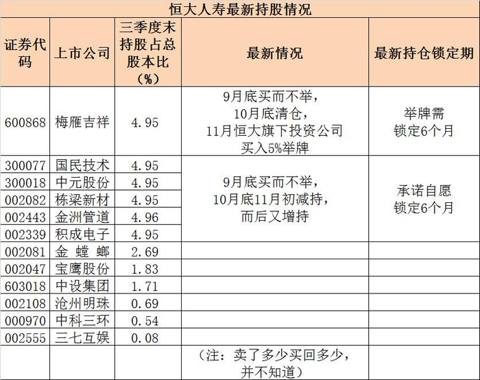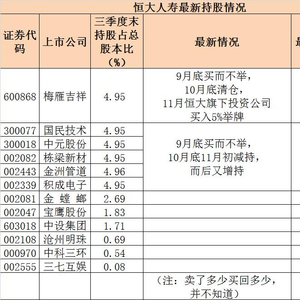 附恒大系(恒大人寿和恒大集团持股最新情况表)