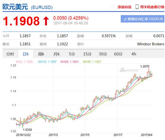 而目前欧元兑美元的汇率已经到了1.19,因此5.5万美元要比5万欧元便宜很多,只相当于4.62万欧元。