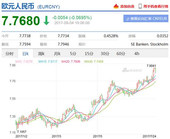 通俗一点来说,欧元作为全球第二大货币,欧元兑美元的升值更厉害,人民币汇率因为美元太弱了,所以兑美元出现明显升值,而相比今年最强的欧元,人民币其实是有所贬值的,从7.2贬值到7.8左右。