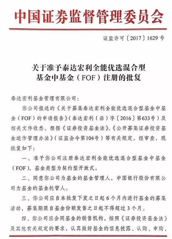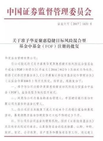 新浪财经讯 9月8日消息,华夏、南方等6家公募基金拿到FOF批文,其中北京4家、上海1家、深圳1家。华夏聚惠稳健目标风险混合型基金中基金(FOF)、南方基金旗下南方全天候策略混合型基金中基金(FOF)、海富通聚优精选混合型基金中基金(FOF)、嘉实领航资产配置混合型基金中基金(FOF)、泰达宏利全能优选混合型基金中基金(FOF)、建信福泽安泰混合型基金中基金(FOF)。具体全名单如下: