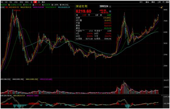 最后看一下深证红利指数的表现,2017年以来该指数涨幅为34.67%,超出上证50指数同期涨幅15.58个百分点。对比2015年的高点,当时深证红利指数的最高点位8523.19点,深证红利指数昨日最高的8271.68点已经很接近这一点位,只差3%。
