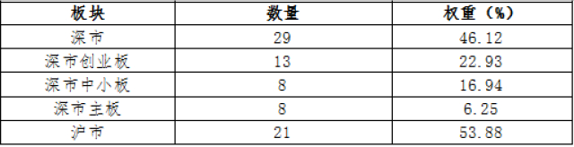 最新一期央视50指数样本股中,深市股票29只,所占权重为46%,沪市21只,所占权重为54%。各板块行业分布较为均衡。