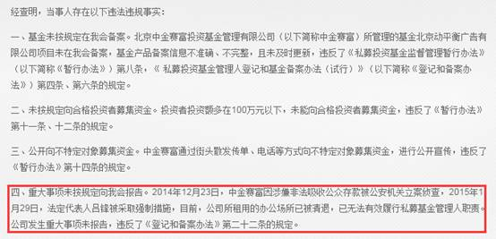 就在同一天,基金业协会还公布了关于北京中金赛富投资基金管理有限公司的纪律处分决定书,相似的问题也浮出水面。