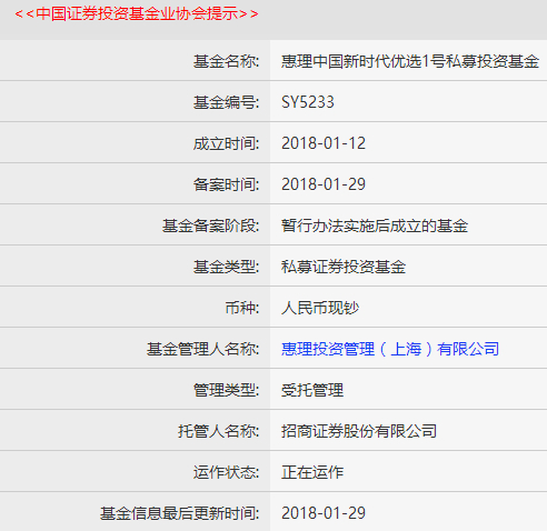 惠理集团1月31日宣布,旗下全资附属公司惠理投资管理(上海)有限公司于1月29日发行首只境内私募证券基金产品——惠理中国新时代优选1号私募投资基金,并接受合格机构投资者及合格个人投资者的认购,基金的投资目标为中国A股市场。