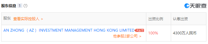 另外,工商注册信息也显示,安中投资由AN ZHONG (AZ) INVESTMENTMANAGEMENT HONG KONG LIMITED 100%控股。