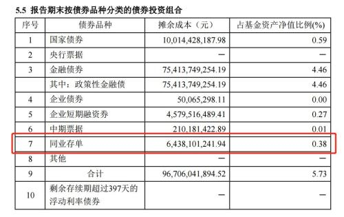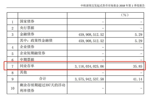 你会发现,除了天弘余额宝,其余两个货币基金持有的同业存单占比都在30%左右。