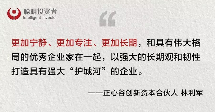面对各种“大新闻”,面对各种可能的投资风险和困难,我们只能更加宁静、更加专注、更加长期,和具有伟大格局的优秀企业家在一起,以强大的长期观和韧性打造具有强大“护城河”的企业,这样才能不辜负我们这个时代,才能在长期中真正创造伟大的价值。