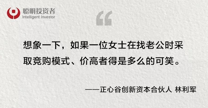 要知道,找到合适的、真正“懂你”的投资人是企业融资的关键,这和找人生伴侣是类似的。想象一下,如果一位女士在找老公时采取竞购模式、价高者得是多么的可笑。
