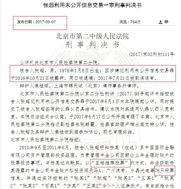 彼时的张超因旗下私募产品业绩成为私募“冠军”,被业内视为私募界的一匹“黑马”。但判决书披露的情况显示,张超出色的投资收益,正是来自其获得的非公开信息。